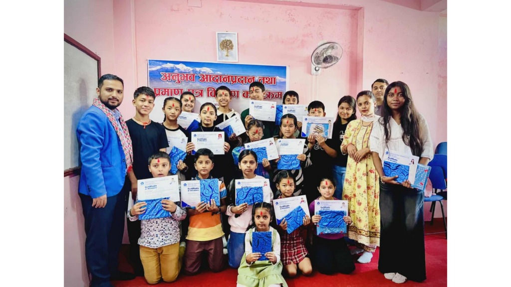 पोखराको सृजना चोकमा रहेको फ्रीडम ट्रेनिङ्ग सेन्टरमा अनुभव आदनप्रदान तथा प्रमाणपत्र बितरण कार्यक्रम सम्पन्न भएको छ । १५ दिन सम्म सञ्चालन भएको उक्त उद्घोषण तथा भाषणकला तालिम लिईएका १७ जना बिद्यालय स्तीय बालबालिकाहरुको सहभागिता रहेको तालिमका प्रमुख प्रशिक्षक तथा ट्रेनिङ्ग सेन्टरका सञ्चालक बिनोद पाहारीले जानकारी दिनुभयो । समापन कार्यक्रममा प्रशिक्षार्थीहरुलाई प्रमाणपत्र बितरण तथा तालिम पश्चातको अनुभव र बिभिन्न अवार्डले सम्मान समेत गरिएको थियो ।